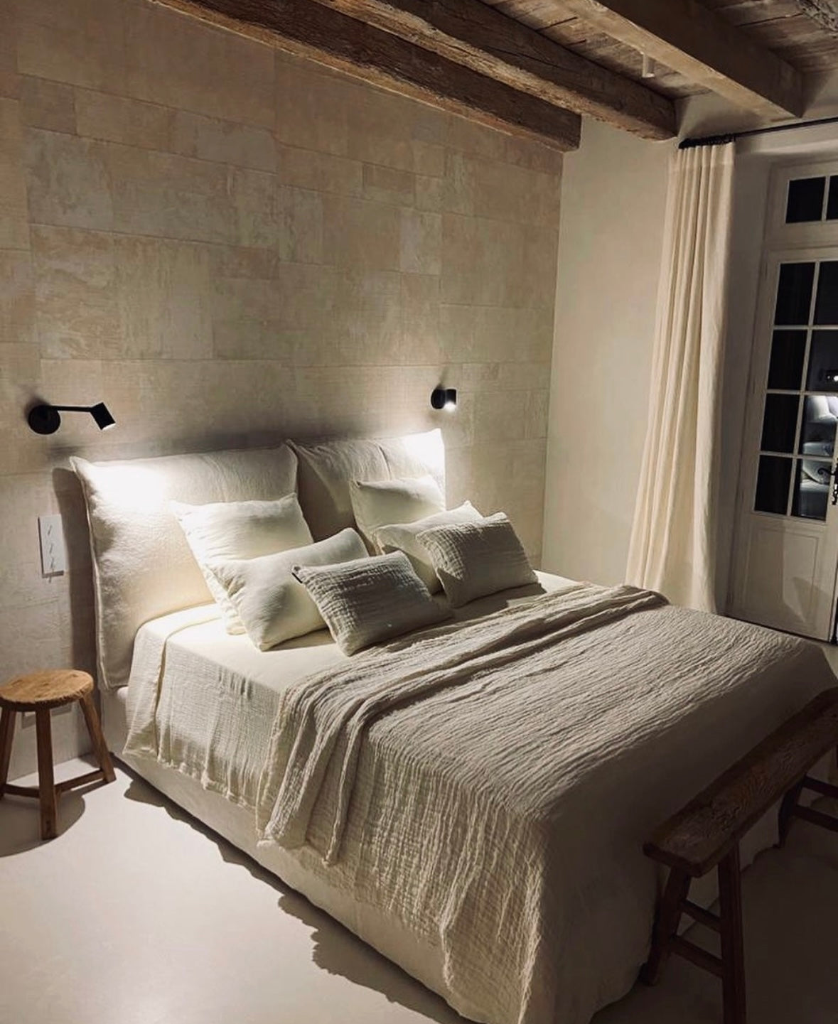 De vrijstaande badkuip, de moderne wastafels met matzwarte kranen en de sfeervolle verlichting maken het geheel helemaal af. Doordat badkamer en slaapkamer in elkaar overlopen, ontstaat er een ruimtelijk en hotel-chic gevoel – een echte oase van comfort en stijl.