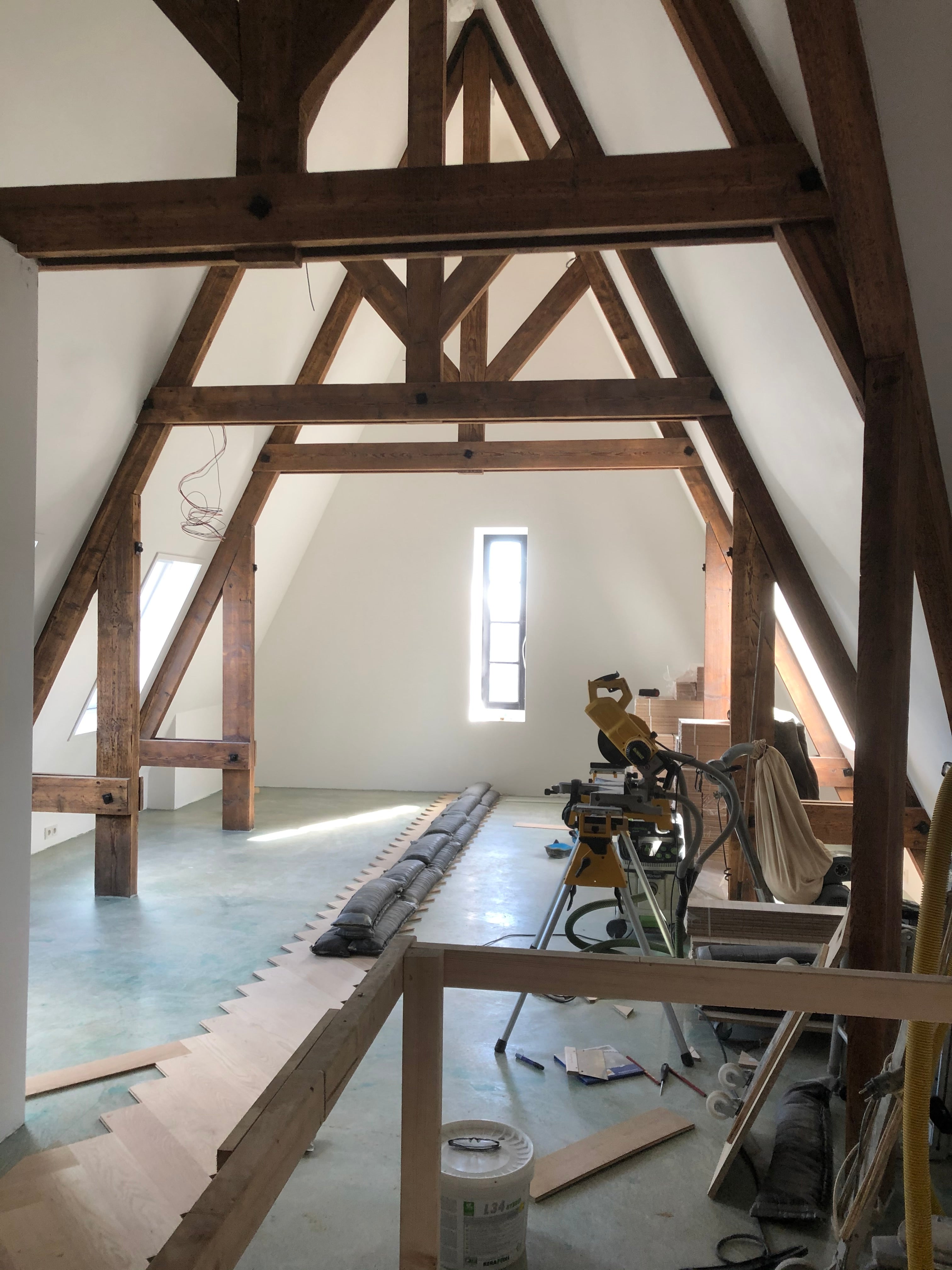 In Noordwijkerhout mochten wij een grote woning voorzien van maar liefst 1000 m² strak stucwerk. Daarbij hebben wij het latex spuitwerk verzorgd, balken geschuurd, geplamuurd en afgewerkt met een transparante beits.
